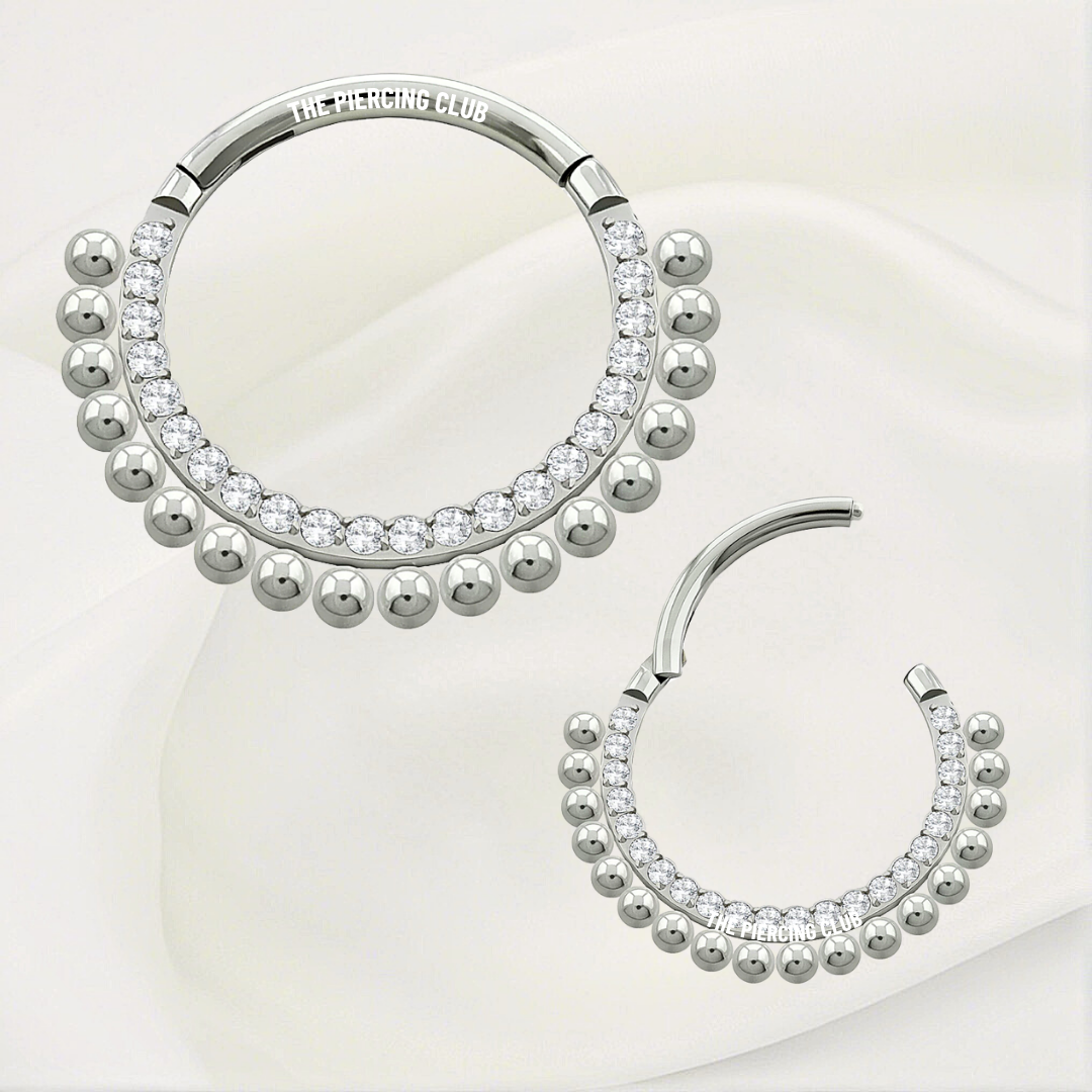 Aro, argolla astral con cristal blanco deluxe / Daith piercing titanio grado implante