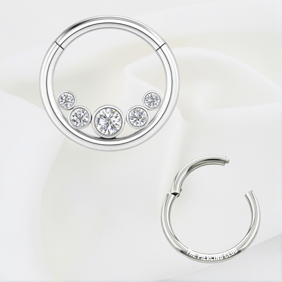 Aro, argolla cluster cristal blanco/ Daith - Septum piercing, titanio grado implante
