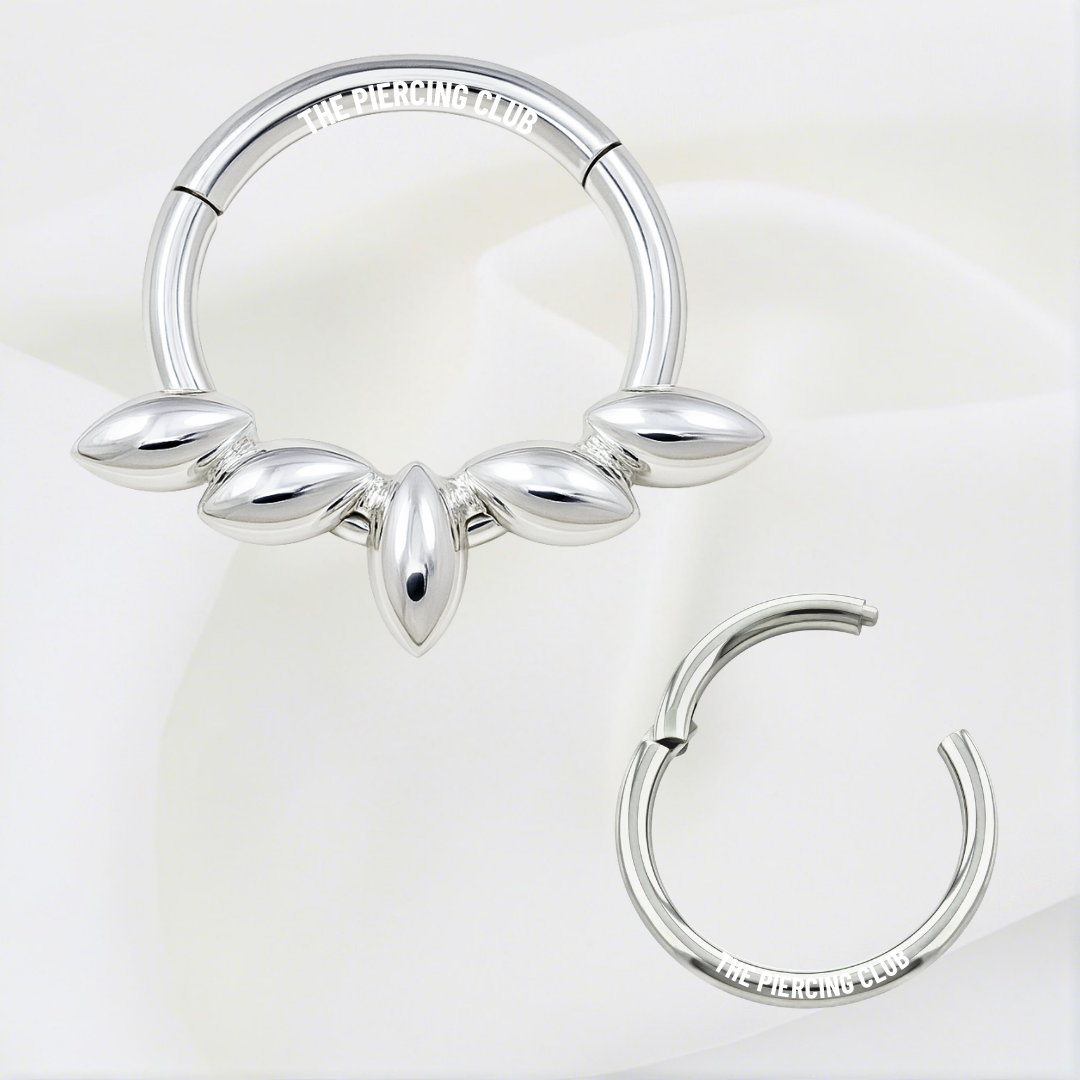 Aro, argolla con diseño de hojas / Daith - Septum piercing, titanio grado implante