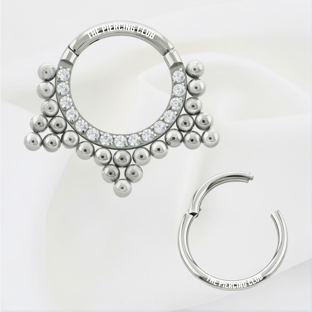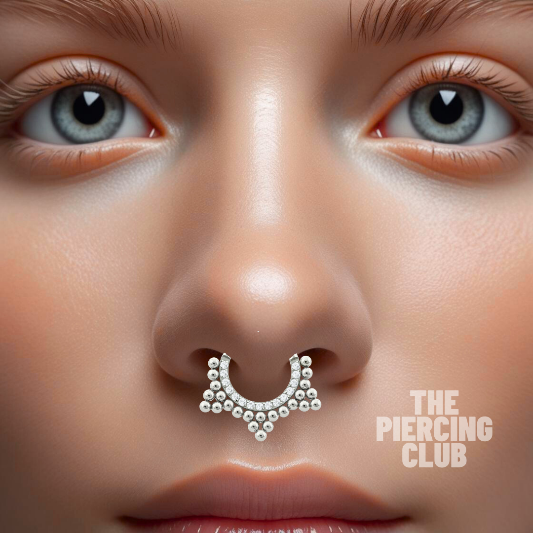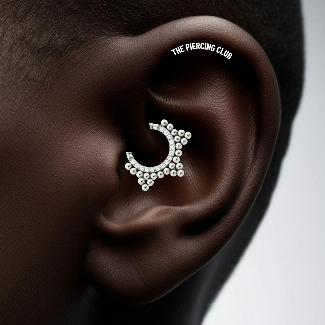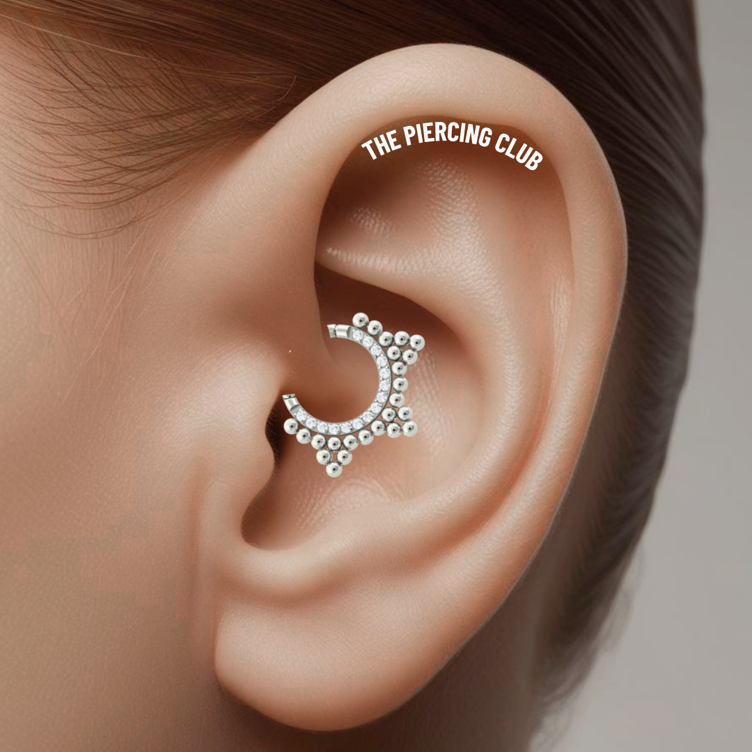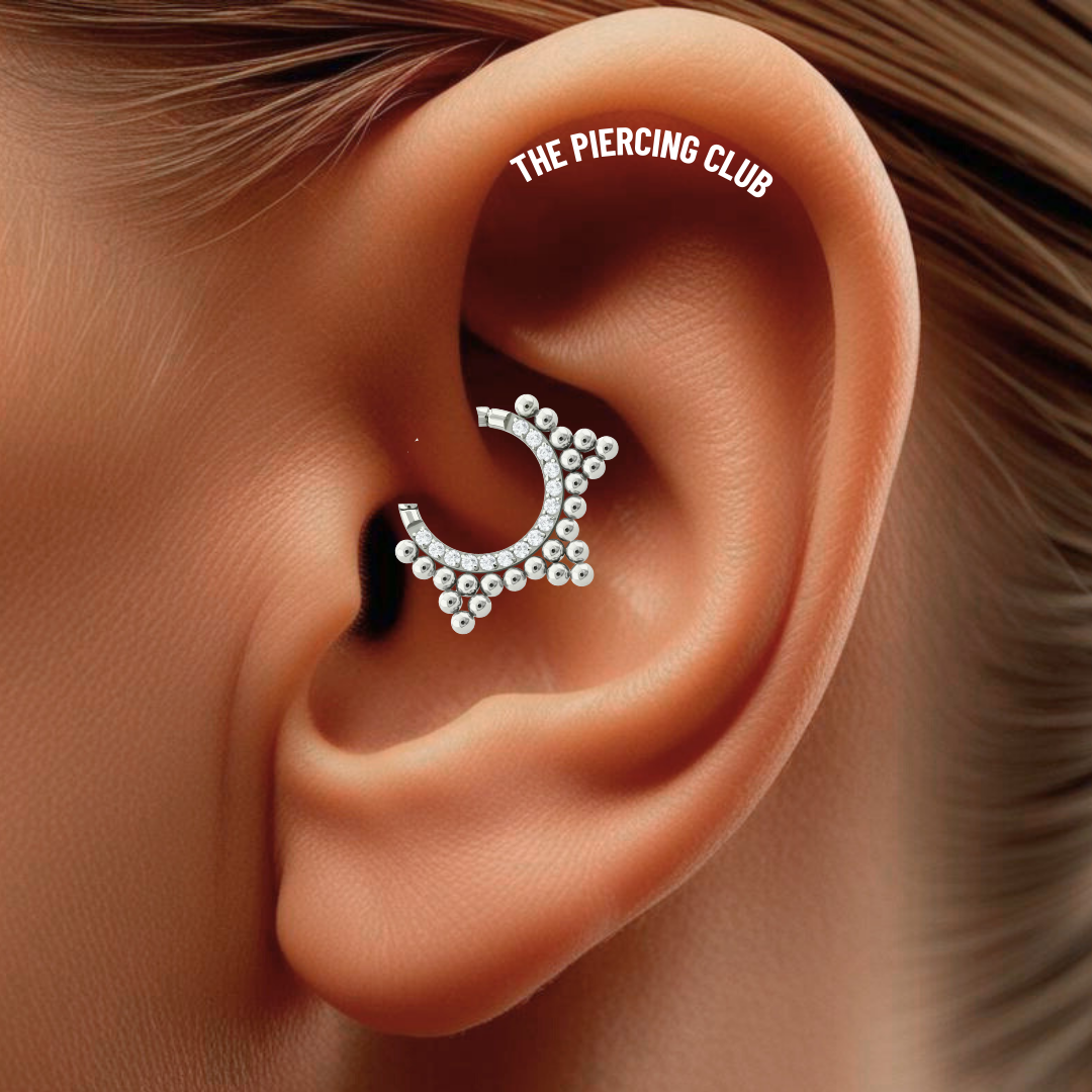 Aro, argolla con puntas y cristal blanco / Daith - Septum piercing, titanio grado implante cantidad
