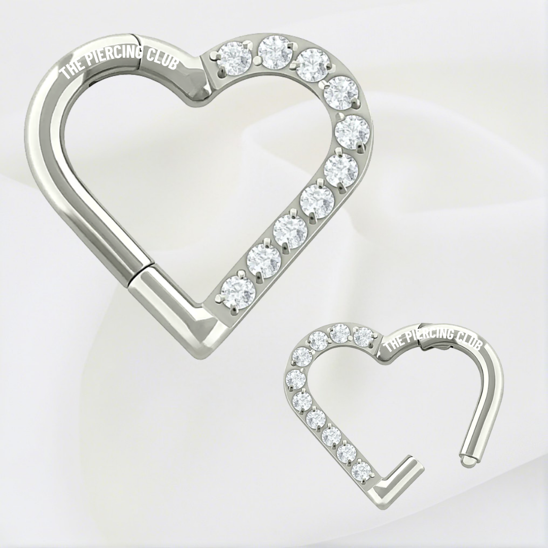 Aro, argolla corazon con cristal blanco deluxe (izquierda) / Daith piercing titanio grado implante