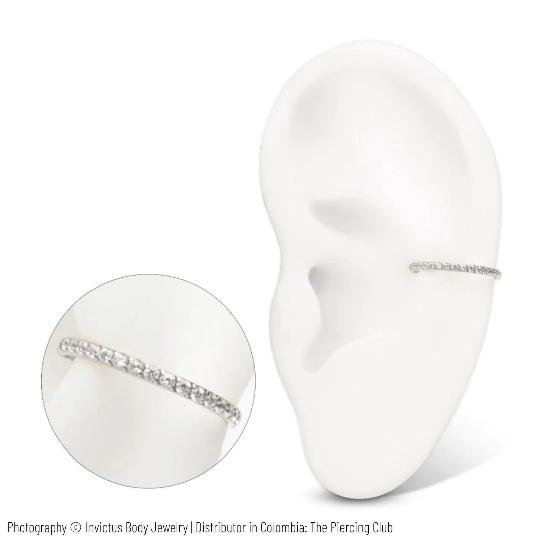 Este aro clicker de titanio grado implante con cristales blancos suizos es la joya perfecta si tu perforación no está al 100% pero quieres utilizar un aro. Ideal para Helix y Conch.