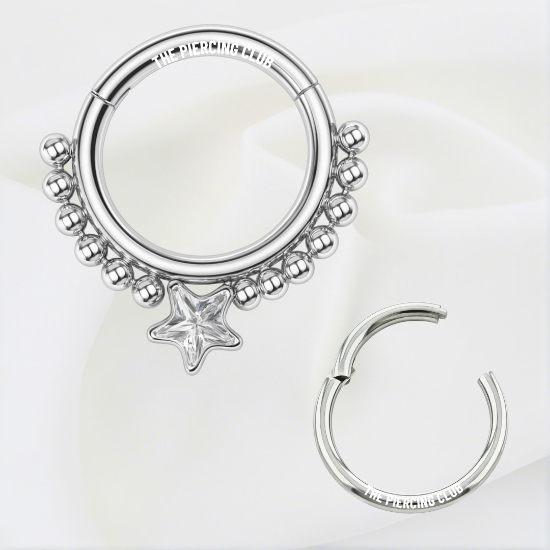 Aro, argolla estrella con cristal blanco / Daith - Septum piercing, titanio grado implante