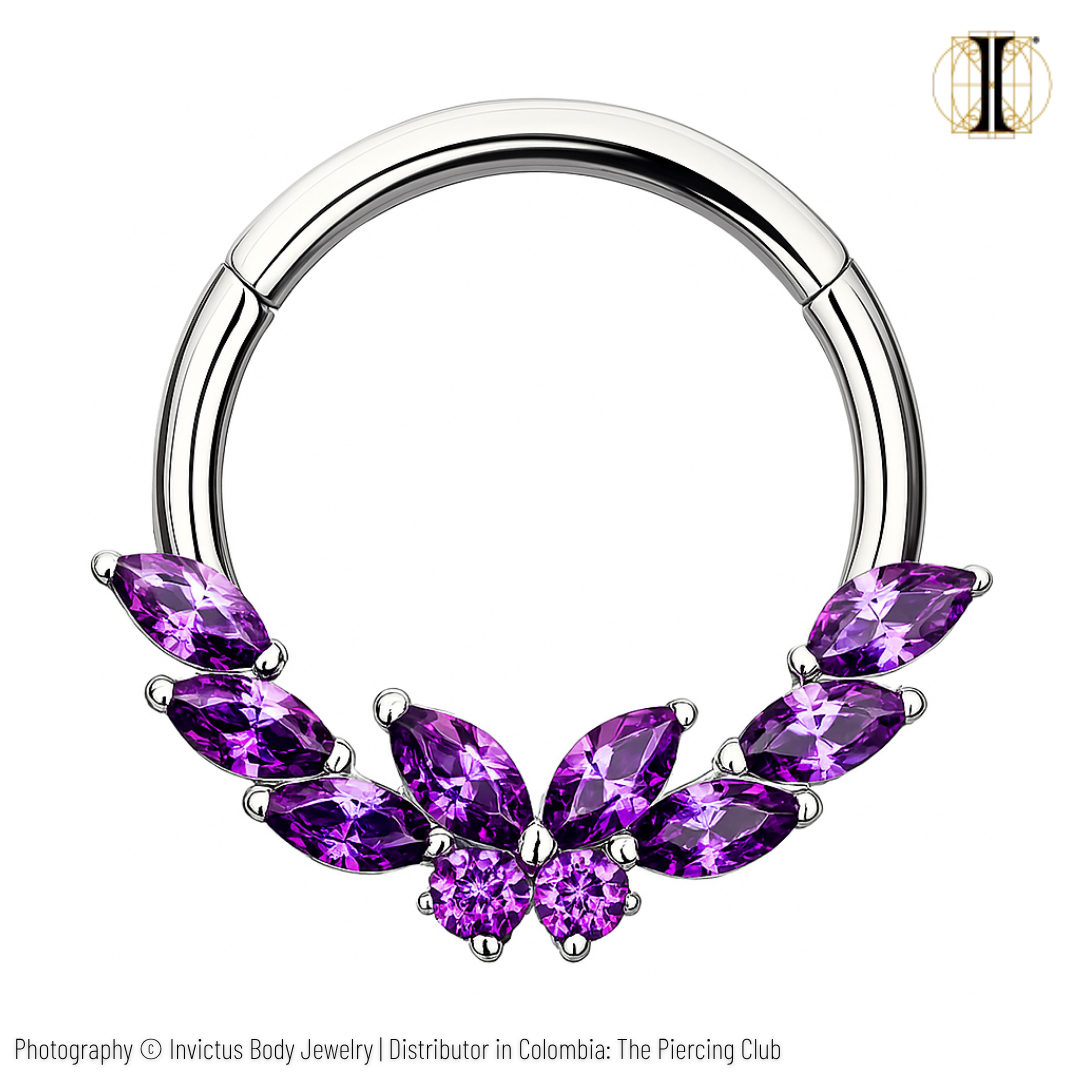 Aro, Argolla mariposa con cristal Púrpura deluxe / Titanio grado implante / INVICTUS
