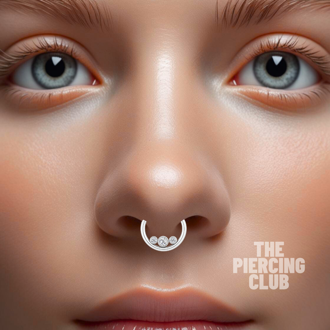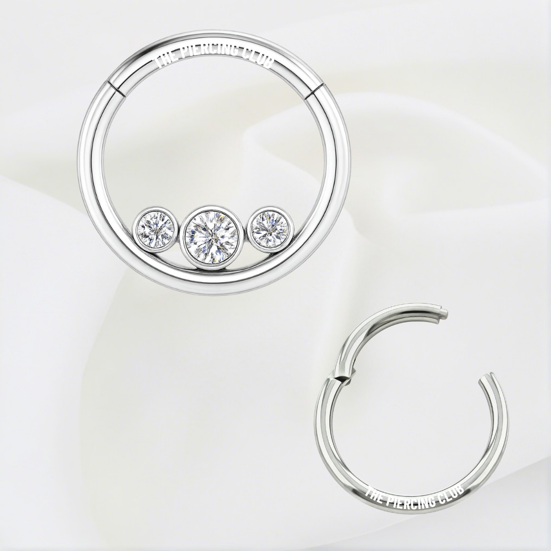 Aro, argolla tricluster con cristal blanco / Daith - Septum piercing, titanio grado implante