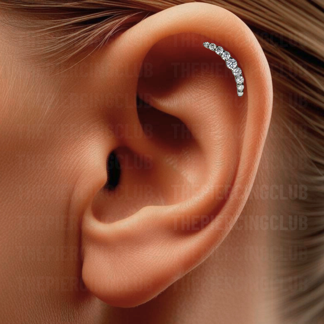 Joya cluster 9 gemas cristal blanco deluxe / Helix piercing, titanio grado implante