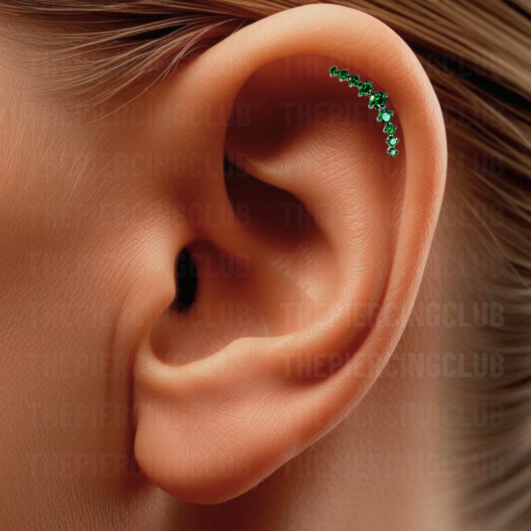 Joya cluster 9 gemas cristal verde esmeralda deluxe / Helix piercing, titanio grado implante