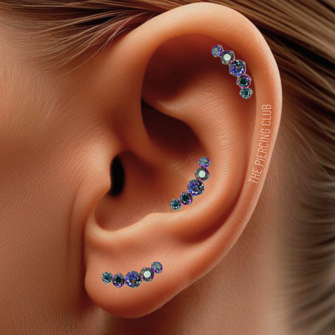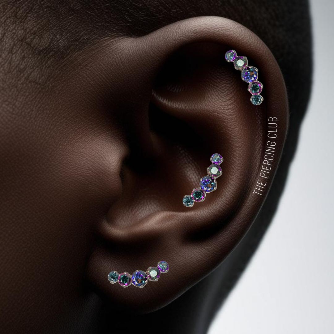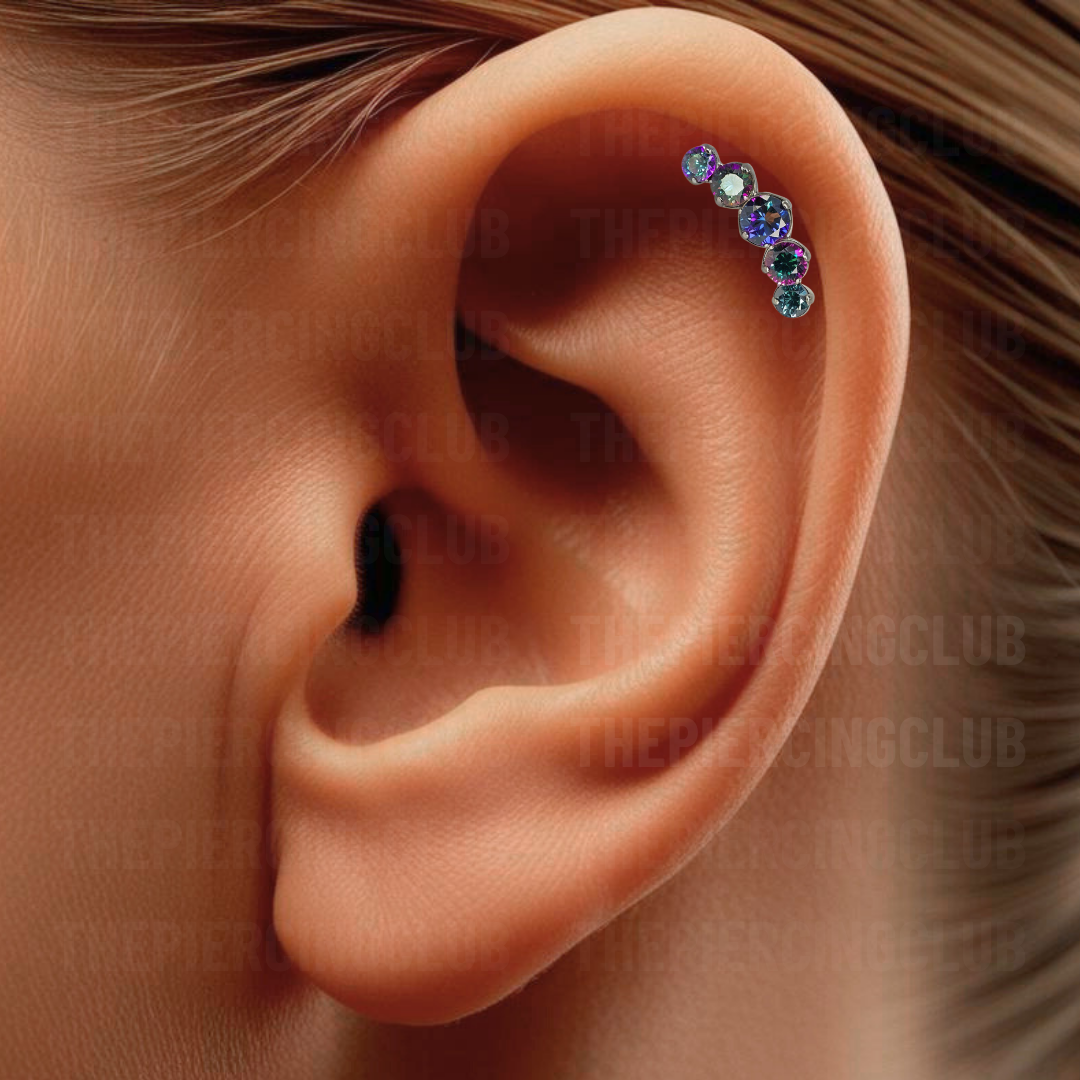 Joya cluster de cristal aurora boreal oscuro deluxe / Helix piercing, titanio grado implante