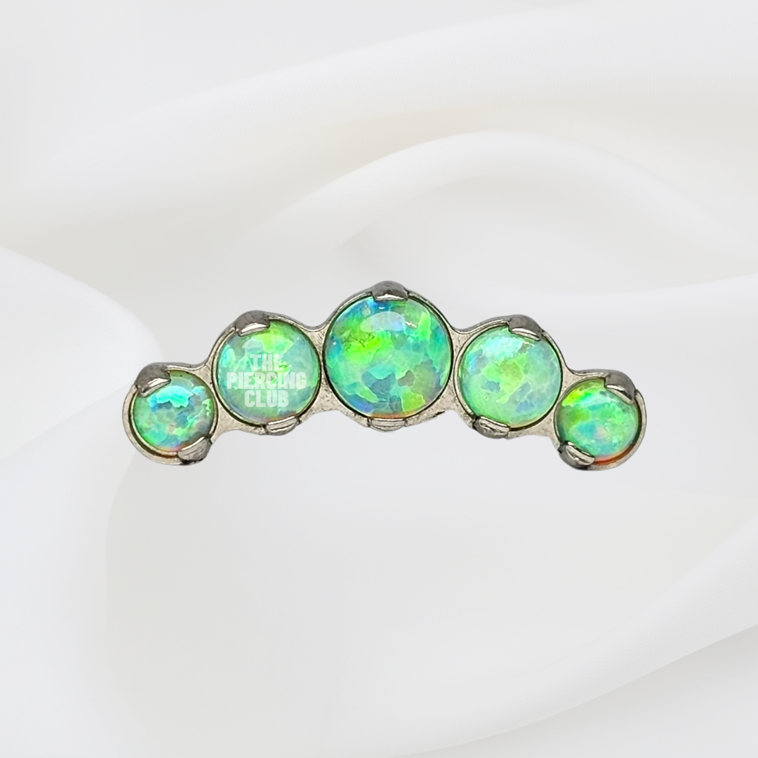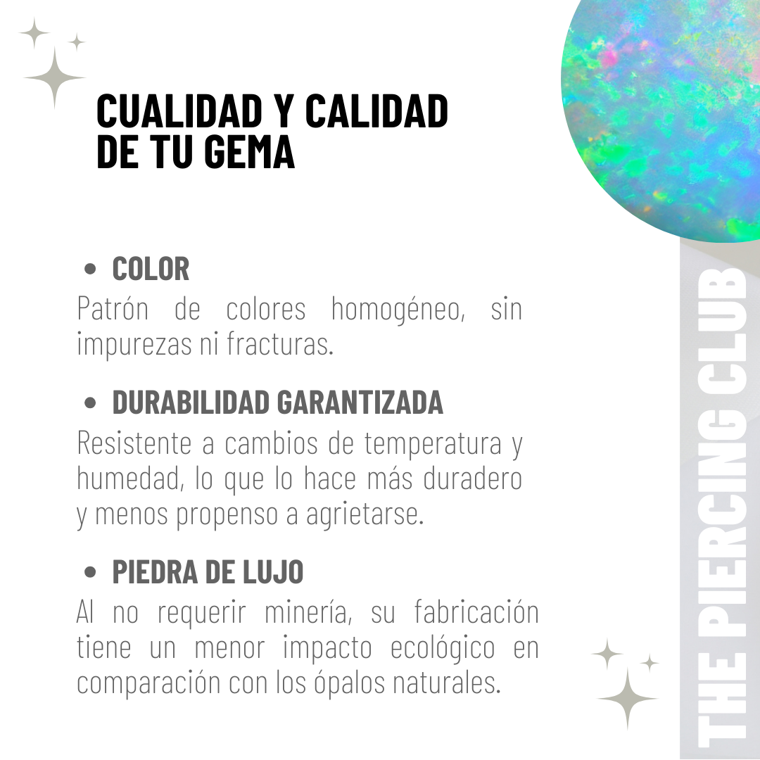 Joya 100% en titanio grado implante con pulido en su superficie, lo que realmente la hace especial es su piedra de ópalo verde, suave y luminoso, con tonos que inspiran paz y armonía, como un bosque en primavera. Es el detalle perfecto para resaltar tu estilo sin sacrificar el bienestar de tu piel.