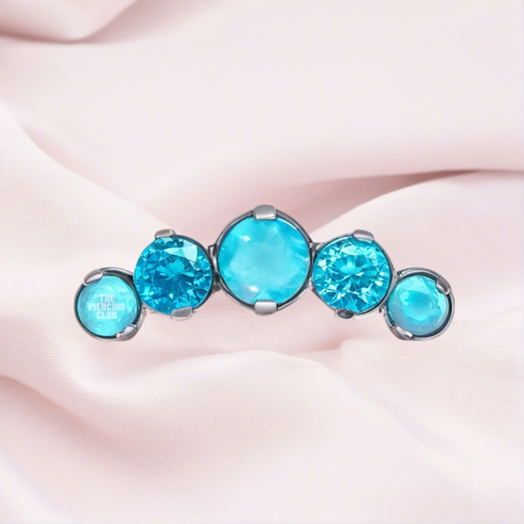 Joya 100% en titanio grado implante con pulido en su superficie, lo que realmente la hace especial es su piedra de opalo aguamarina, sus tonos azul verdosos recuerdan al mar en calma, fresco y relajante y su cristal suizo, que atrapa la luz de una manera increíble, dándole un brillo sofisticado y elegante. Es el detalle perfecto para resaltar tu estilo sin sacrificar el bienestar de tu piel.