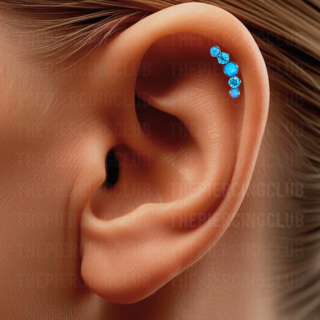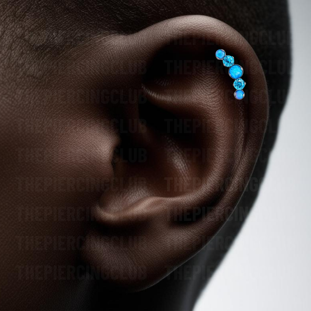 Joya 100% en titanio grado implante con pulido en su superficie, lo que realmente la hace especial es su piedra de opalo azul, hipnótico y profundo, como un cielo estrellado o las aguas de un lago misterioso y su cristal suizo, que atrapa la luz de una manera increíble, dándole un brillo sofisticado y elegante. Es el detalle perfecto para resaltar tu estilo sin sacrificar el bienestar de tu piel.