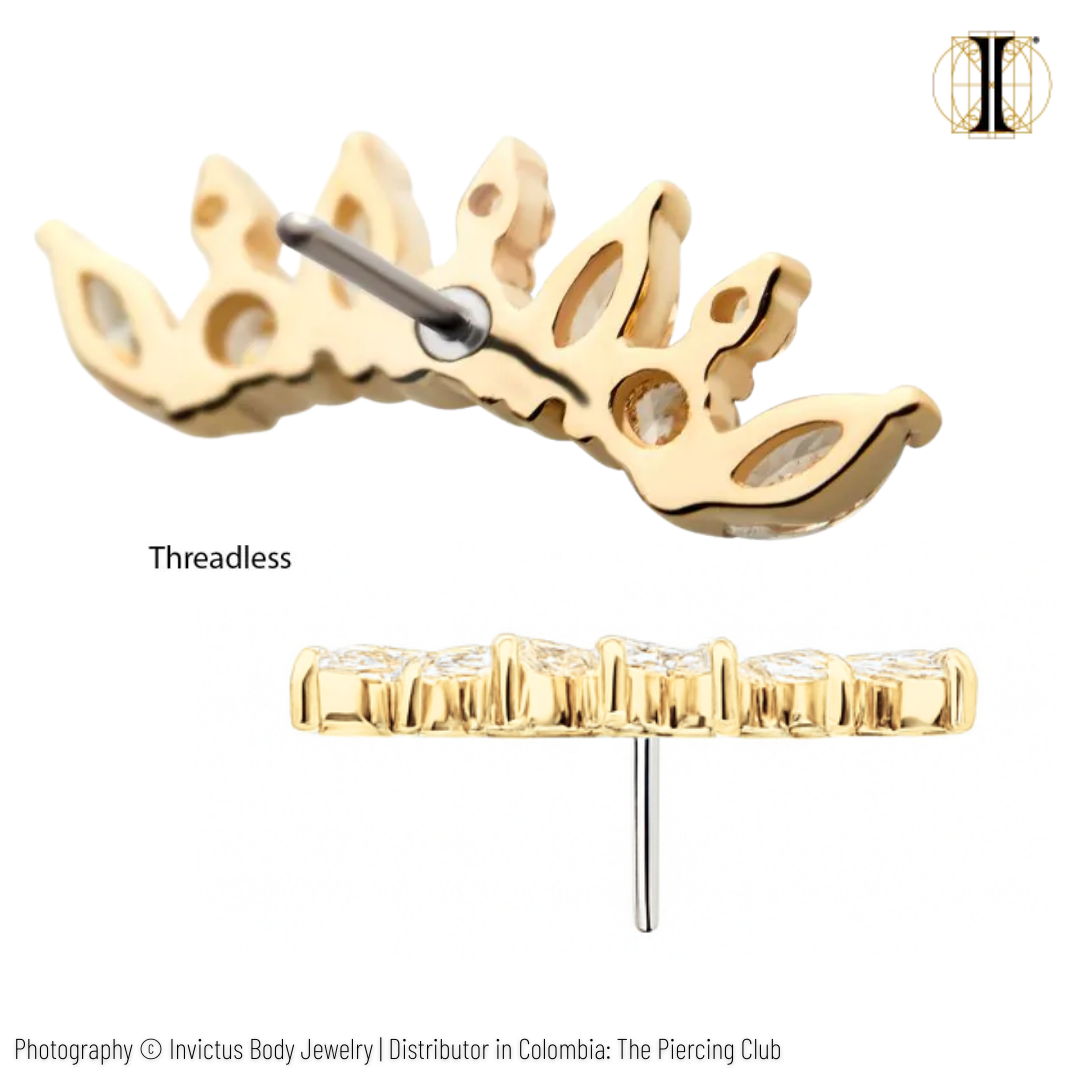 - Top en oro macizo 14k / Lo que va por dentro de la piel (Labret) en titanio grado implante.