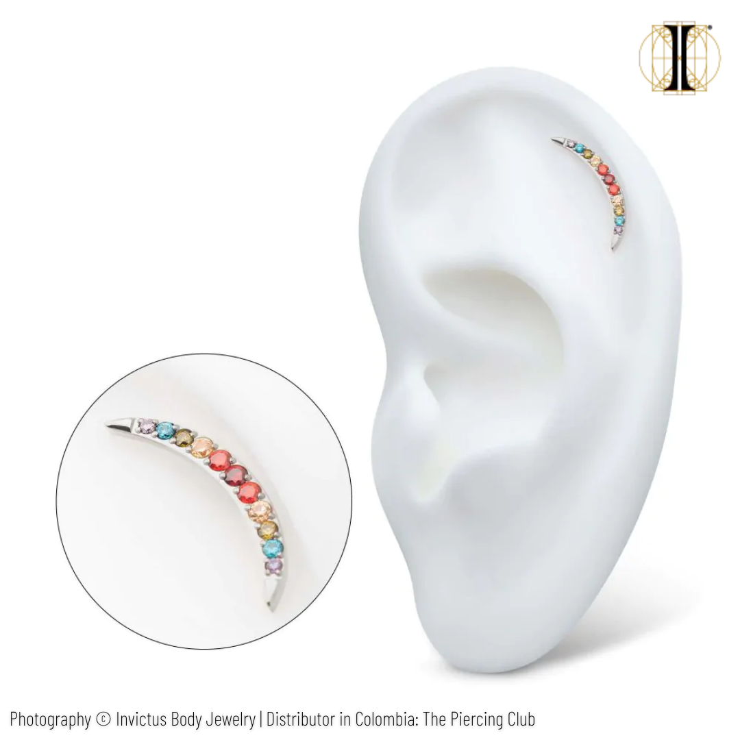 Una pieza delicada y vibrante que combina cristales multicolor en una elegante curva de titanio grado implante, cuidando tu piel y resaltando tu estilo. Perfecta para dar un toque alegre y sofisticado a tu look diario. Stock limitado: ¡llévatela antes de que vuele!