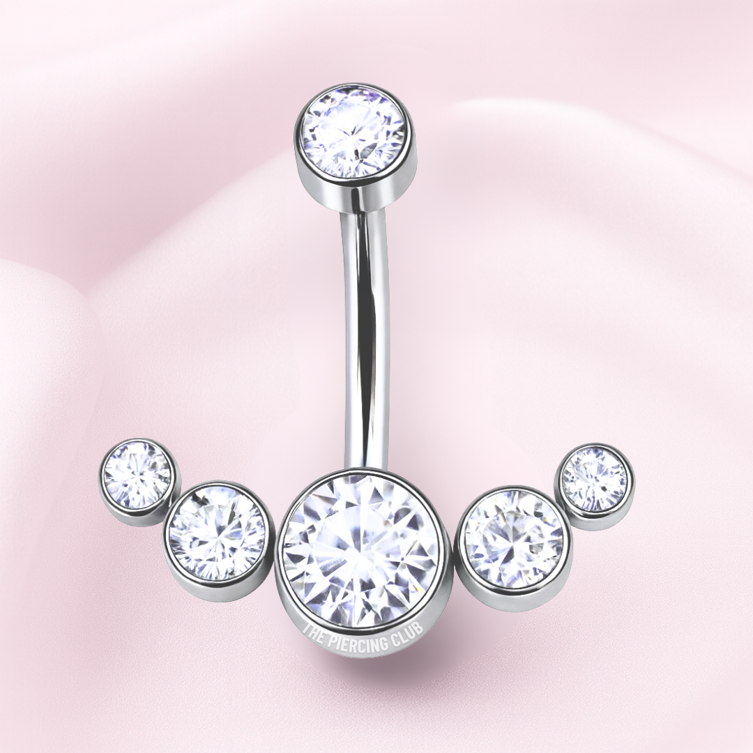 Joya con 5 cristales blancos deluxe / Navel (Ombligo) piercing , titanio grado implante