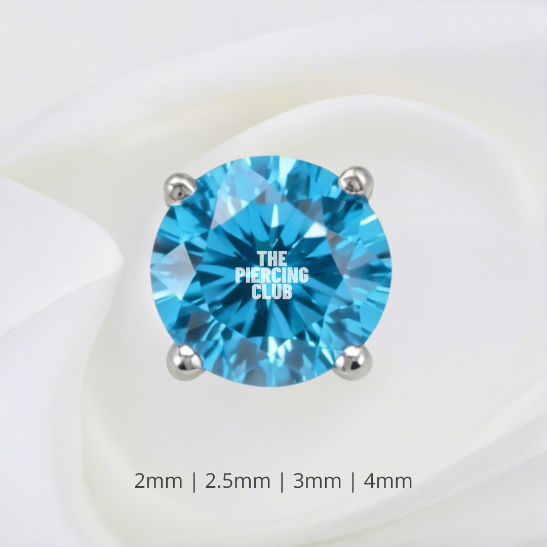 Este cristal aguamarina brilla como esos momentos que no se olvidan. Pequeñito, pero lleno de luz, se ajusta justo donde quieres un detalle sutil pero encantador. Y como está hecho en titanio grado implante de alta calidad, sabes que va a estar contigo por mucho tiempo. Si buscas algo especial y delicado, lo acabas de encontrar.