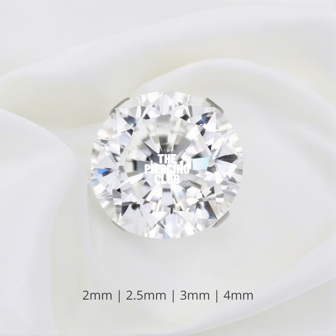Este cristal blanco brilla como esos momentos que no se olvidan. Pequeñito, pero lleno de luz, se ajusta justo donde quieres un detalle sutil pero encantador. Y como está hecho en titanio grado implante de alta calidad, sabes que va a estar contigo por mucho tiempo. Si buscas algo especial y delicado, lo acabas de encontrar.