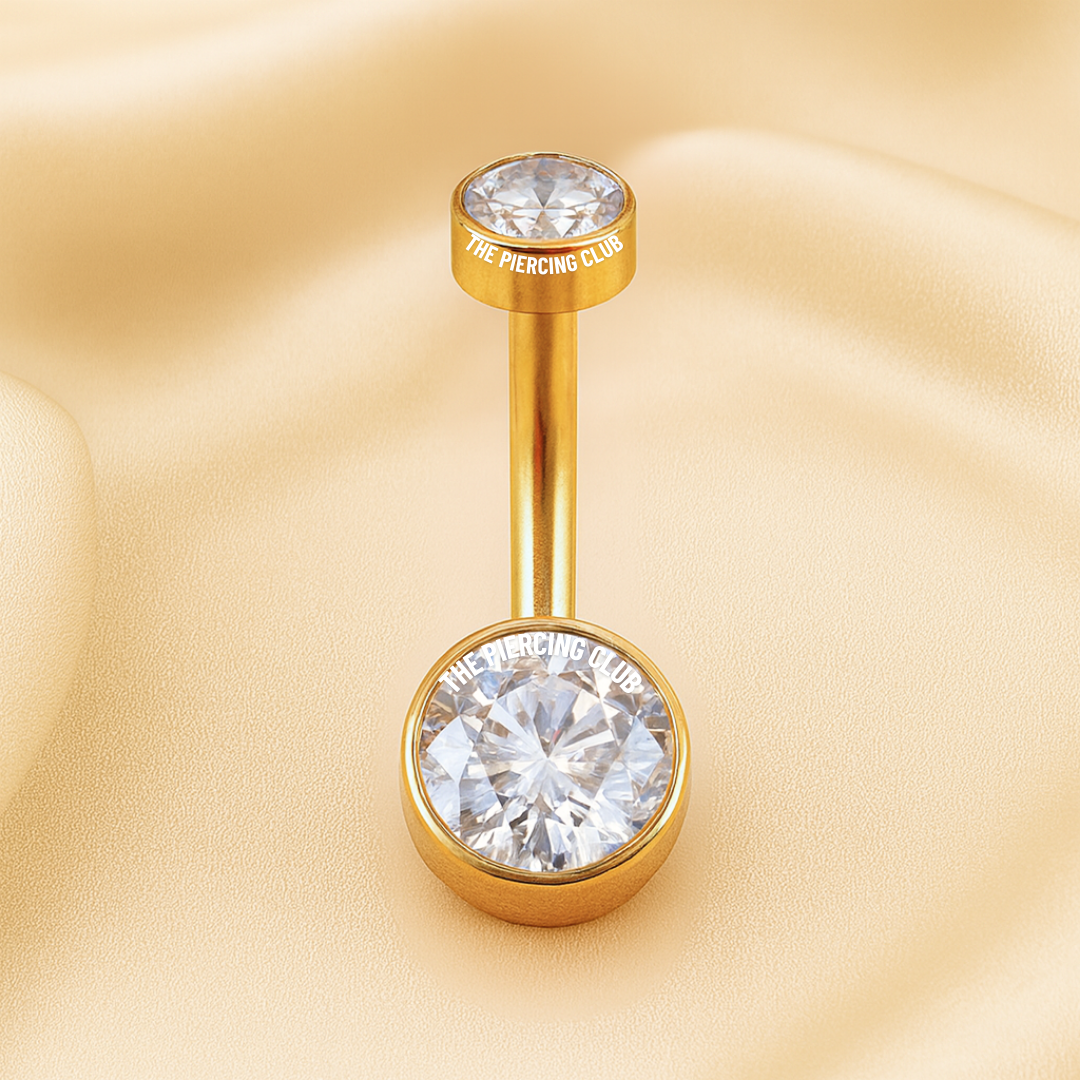 Joya dorada con cristal plano blanco deluxe / Navel (Ombligo) piercing , titanio grado implante