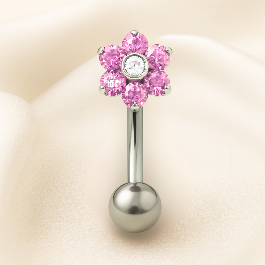 Joya flotante de flor con cristal rosado deluxe / Navel (Ombligo) piercing , titanio grado implante