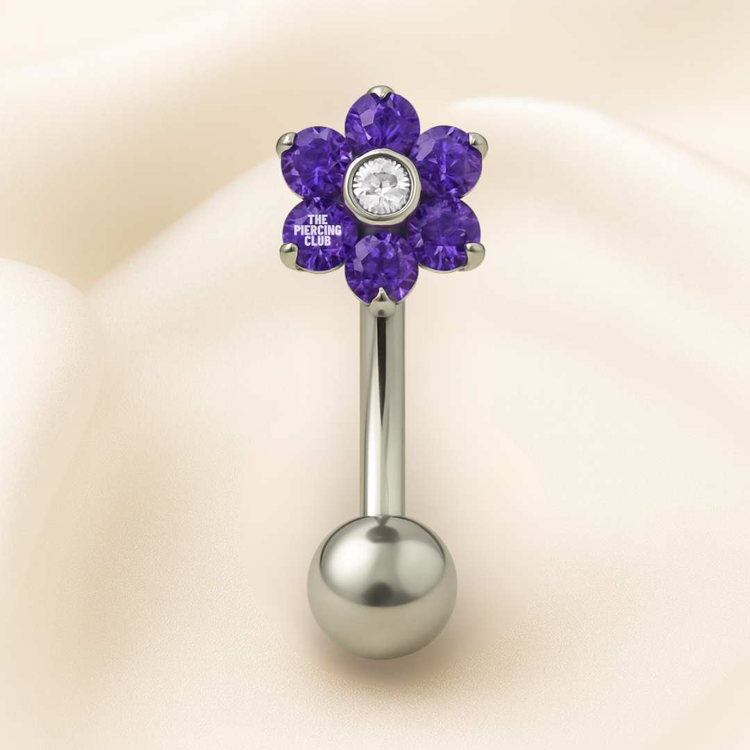 Joya flotante de flor con cristal púrpura deluxe / Navel (Ombligo) piercing , titanio grado implante