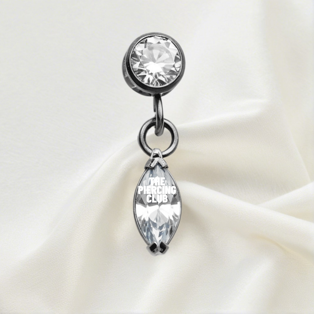 Joya hanger doble cristal blanco bezel / Helix piercing, titanio grado implante