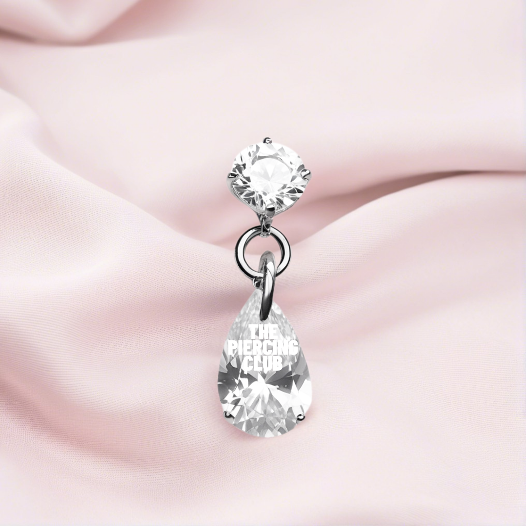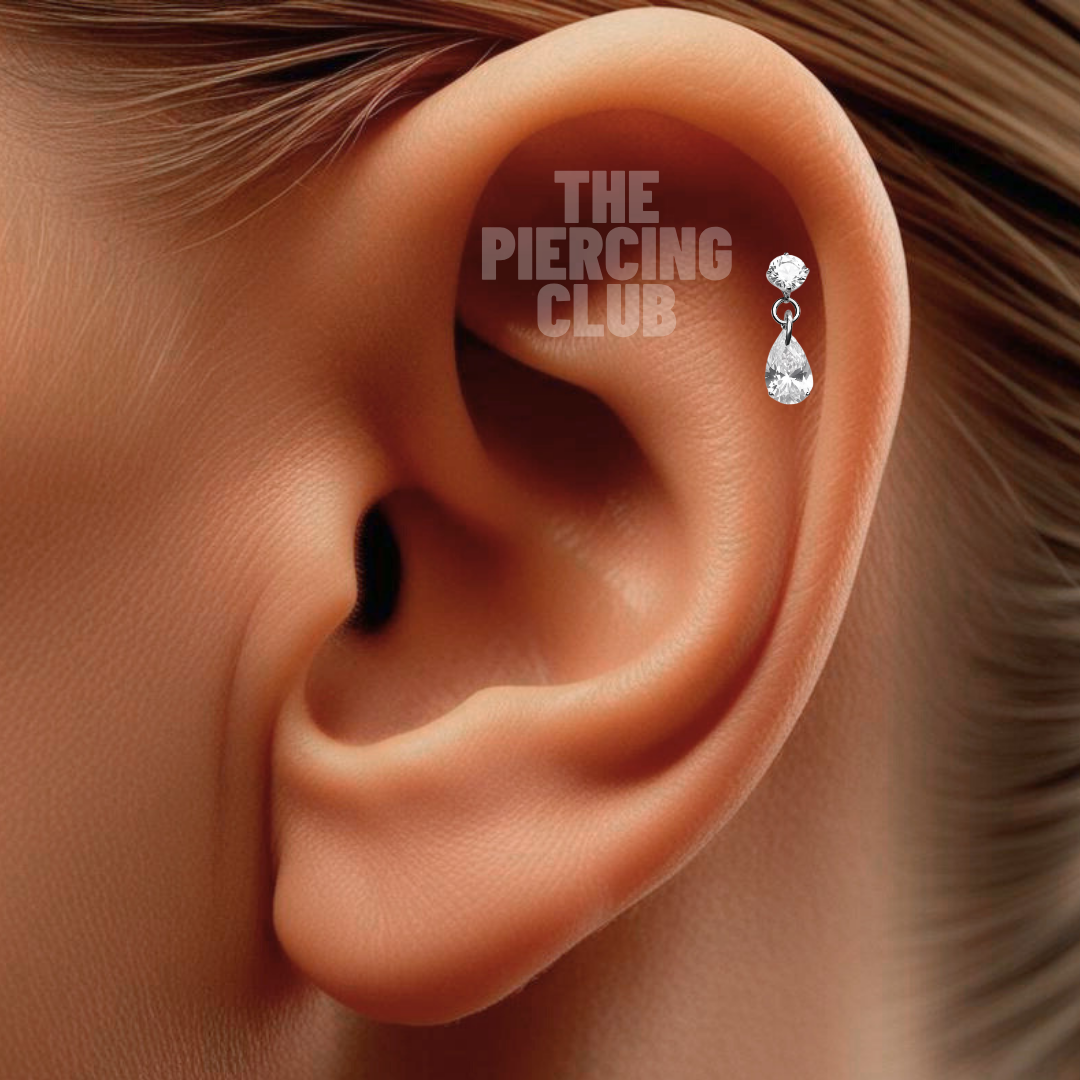Joya hanger gota cristal blanco deluxe / Helix piercing, titanio grado implante
