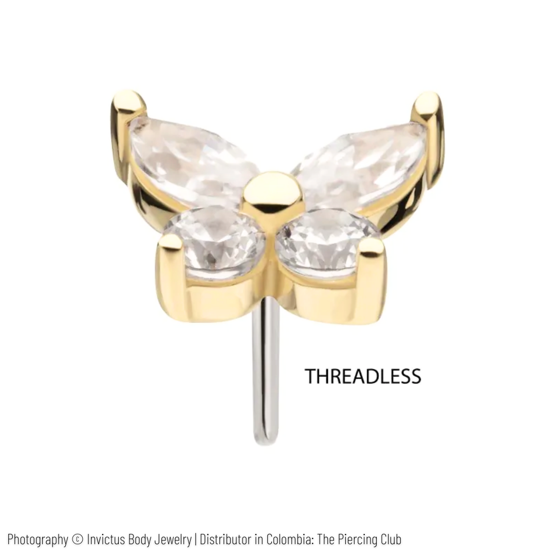 - Top en oro macizo 14k / Lo que va por dentro de la piel (Labret) en titanio grado implante.