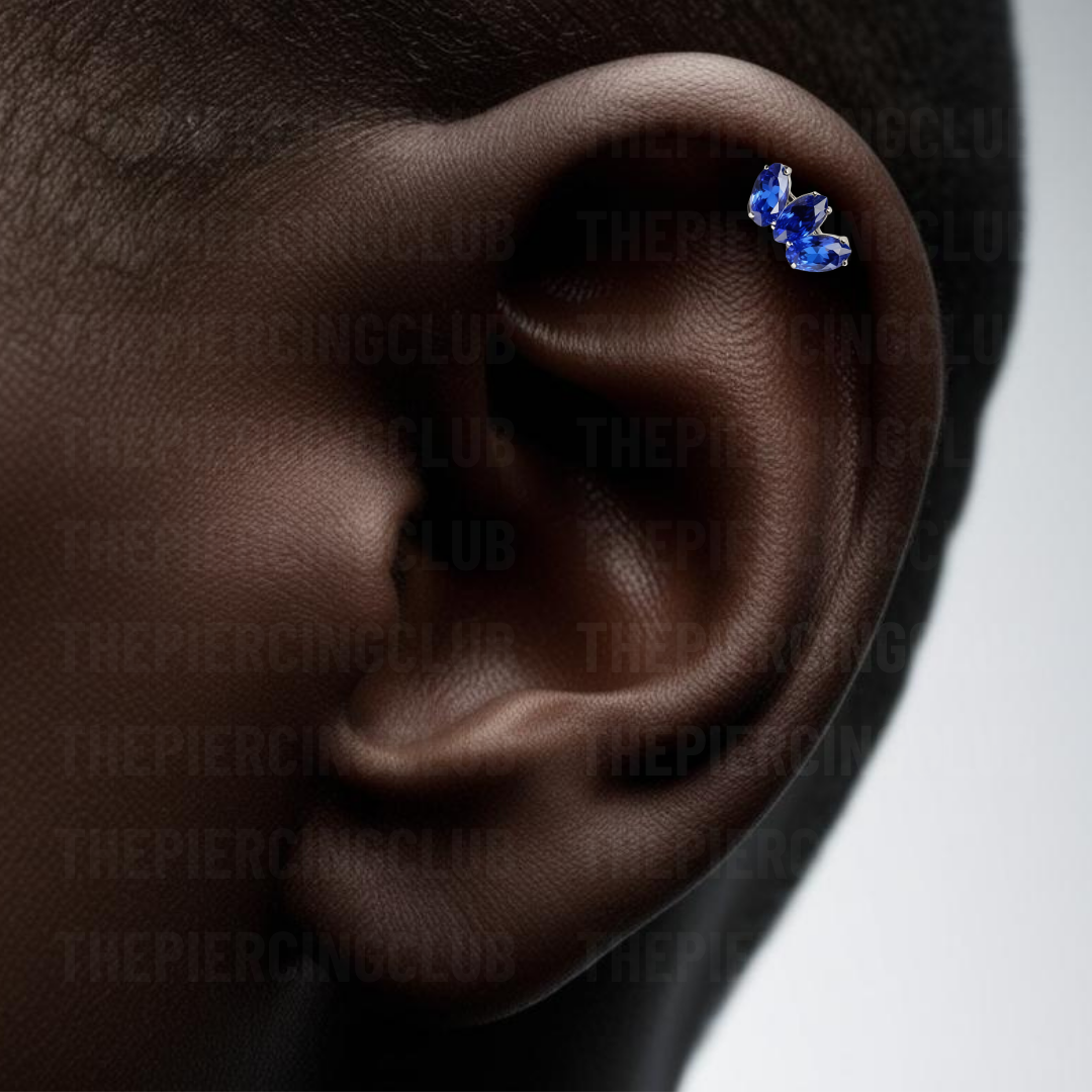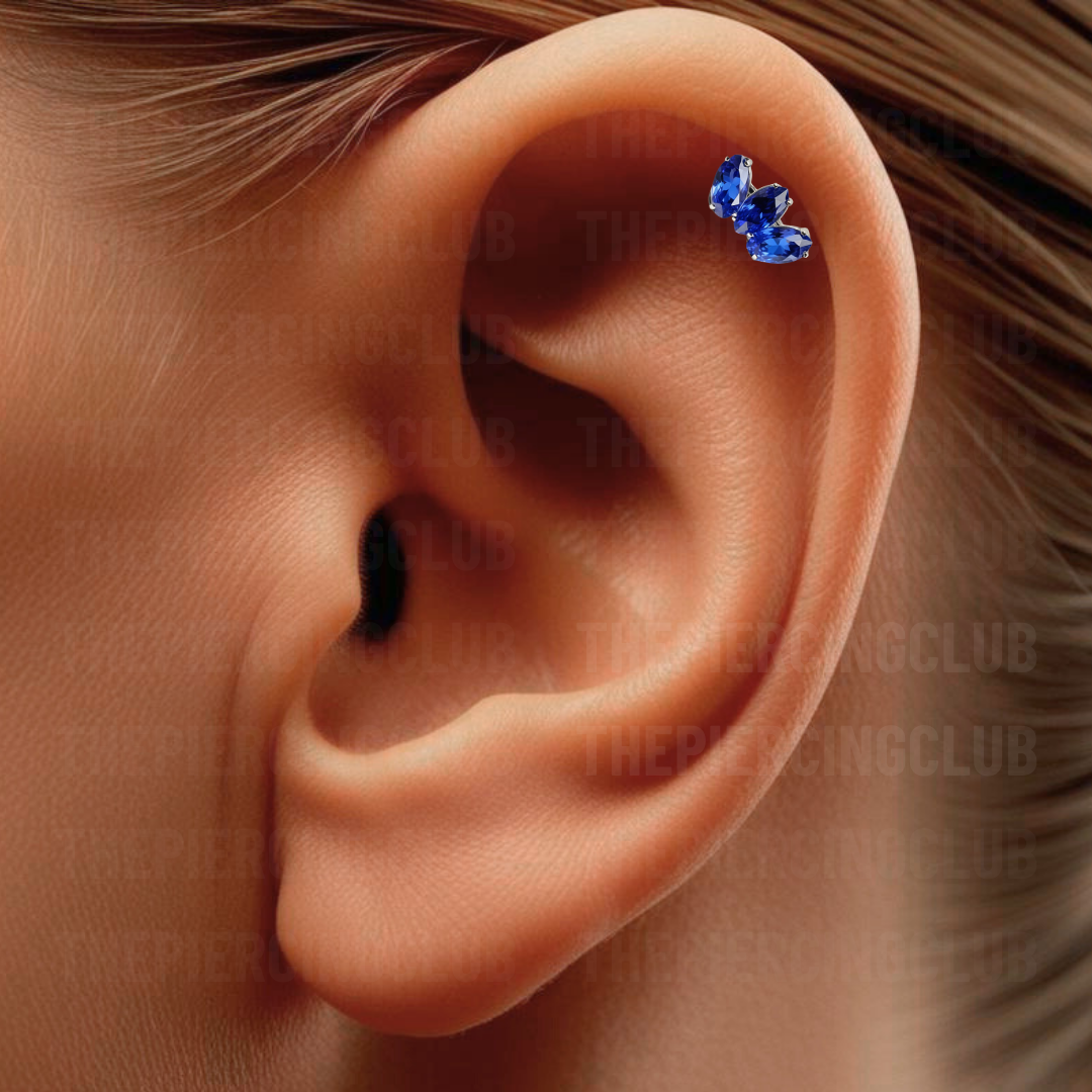 Joya marquise cristal azul zafiro deluxe / Helix piercing, titanio grado implante