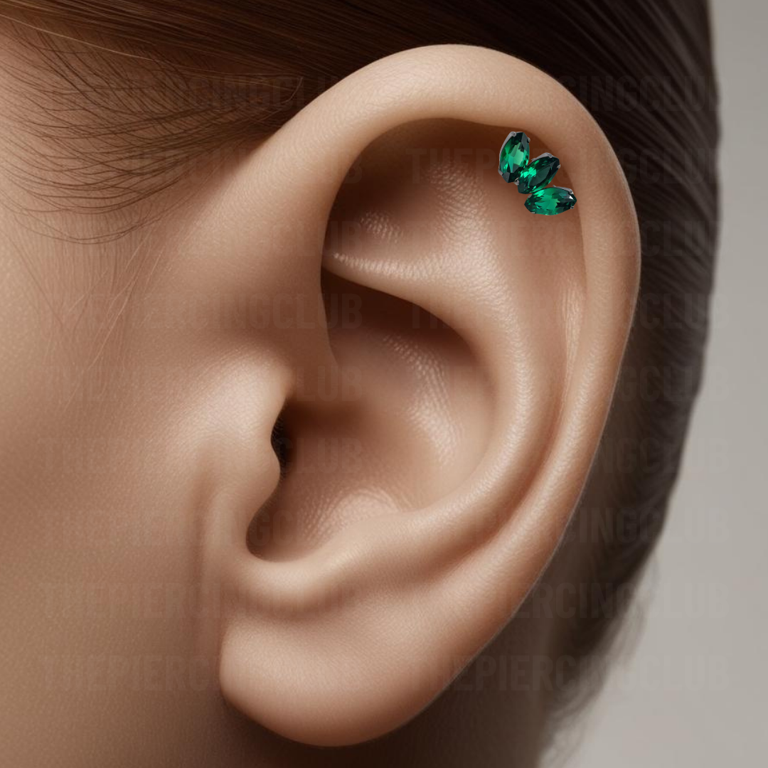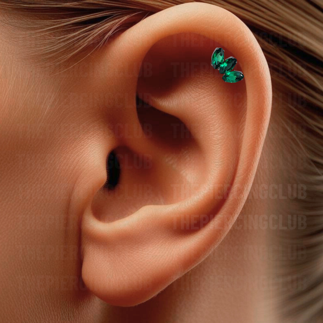 Joya marquise cristal verde esmeralda deluxe / Helix piercing, titanio grado implante