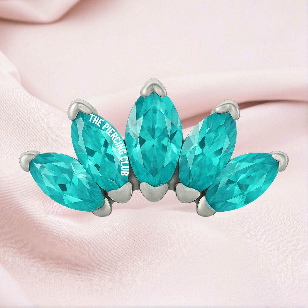 Cinco cristales abrazan casi toda la curva del Helix, convirtiéndolo en una joya llamativa . Es una elección para quienes aman el diseño, desean destacar la oreja completa y buscan una pieza que brille desde todos los ángulos sin necesidad de combinar. Joya 100% en titanio grado implante con pulido en su superficie pero que realmente la hace especial es su cristal suizo aguamarina, que atrapa la luz de una manera increíble, dándole un brillo sofisticado y elegante. Es el detalle perfecto para resaltar tu estilo sin sacrificar el bienestar de tu piel.