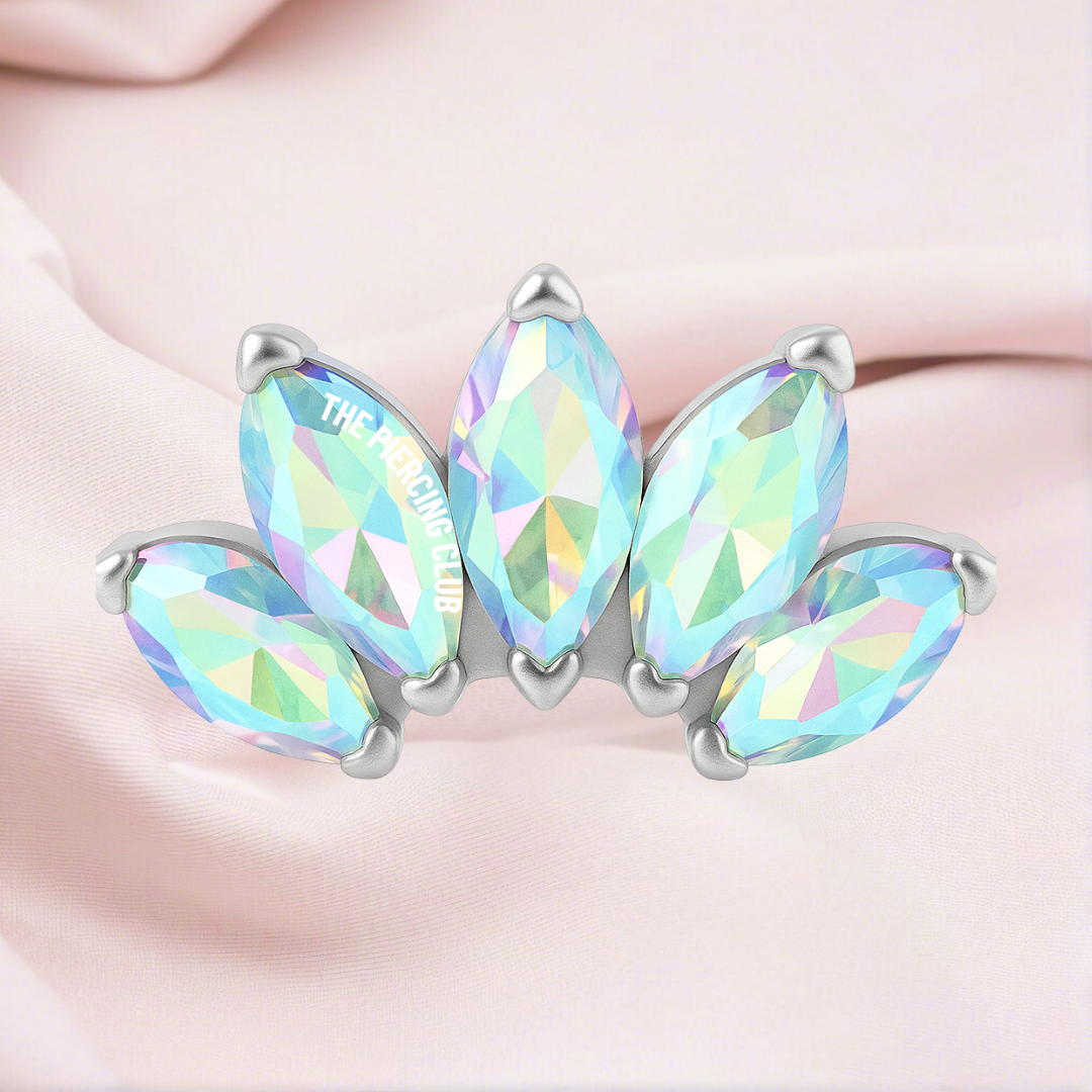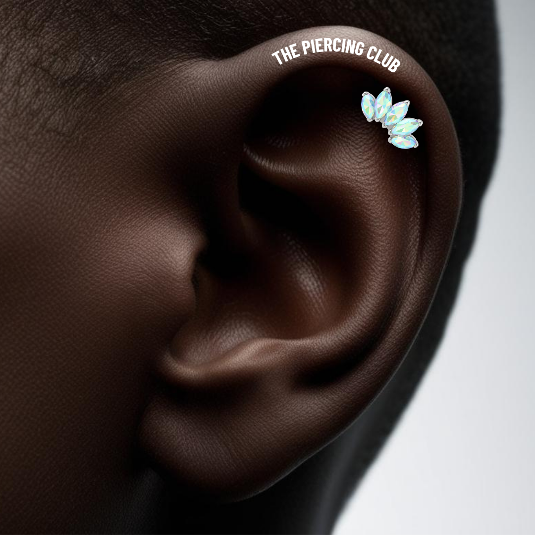 Cinco cristales abrazan casi toda la curva del Helix, convirtiéndolo en una joya llamativa . Es una elección para quienes aman el diseño, desean destacar la oreja completa y buscan una pieza que brille desde todos los ángulos sin necesidad de combinar. Joya 100% en titanio grado implante con pulido en su superficie pero que realmente la hace especial es su cristal suizo aurora boreal, que atrapa la luz de una manera increíble, dándole un brillo sofisticado y elegante. Es el detalle perfecto para resaltar tu estilo sin sacrificar el bienestar de tu piel.