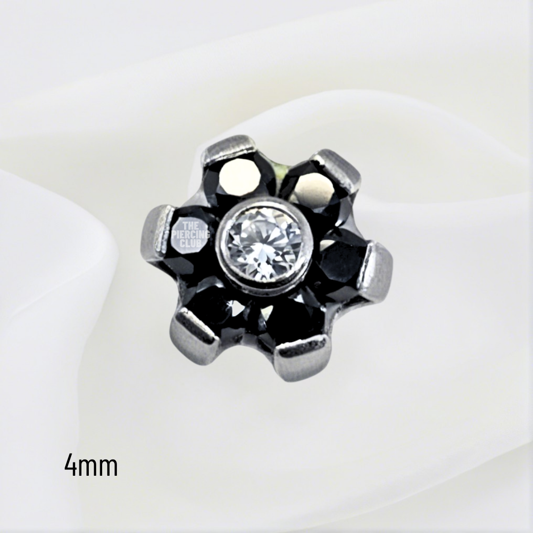 Joya micro hexaflor cristal negro deluxe / Helix piercing, titanio grado implante
