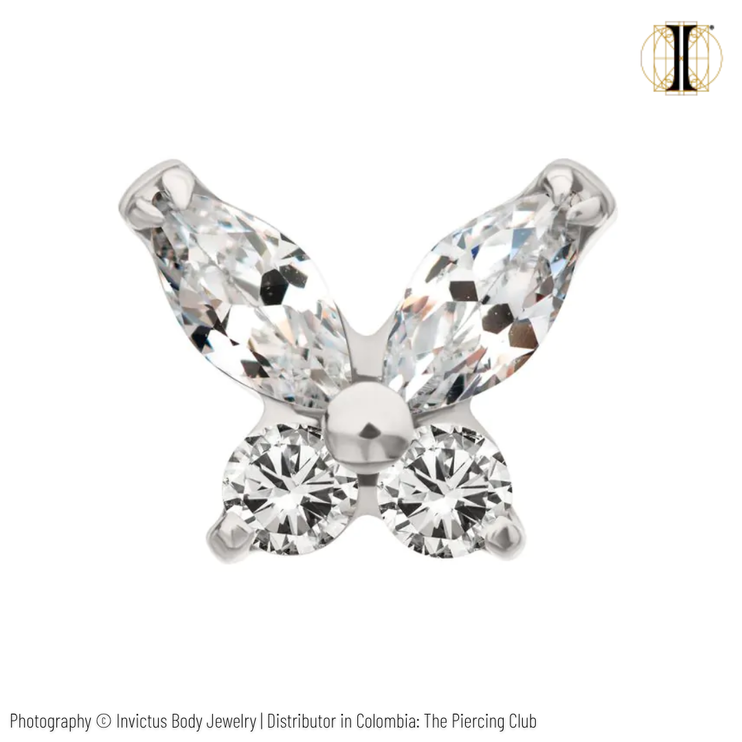 Joya mini mariposa con cristal blanco deluxe / Titanio grado implante / INVICTUS