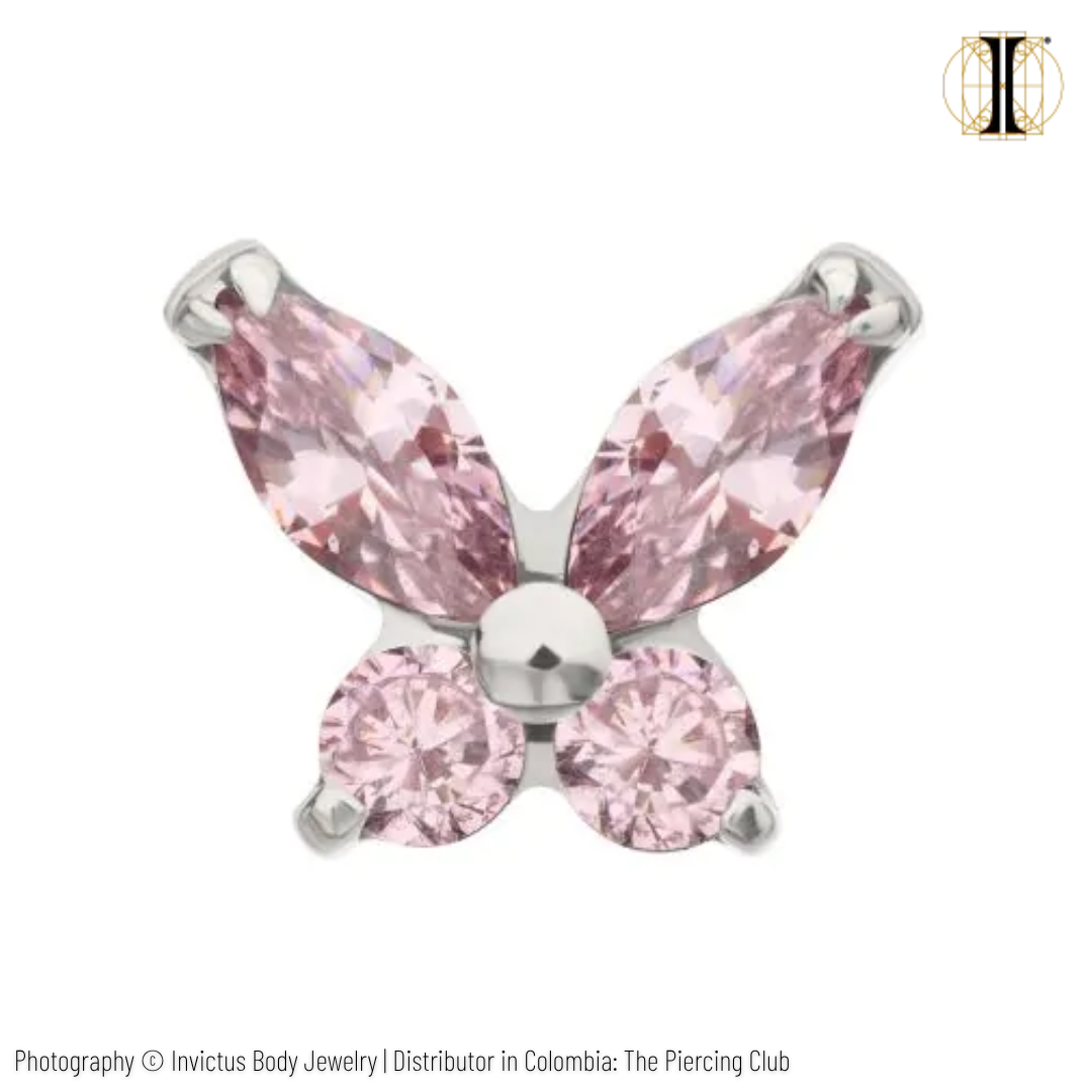 Joya mini mariposa con cristal rosado deluxe / Titanio grado implante / INVICTUS