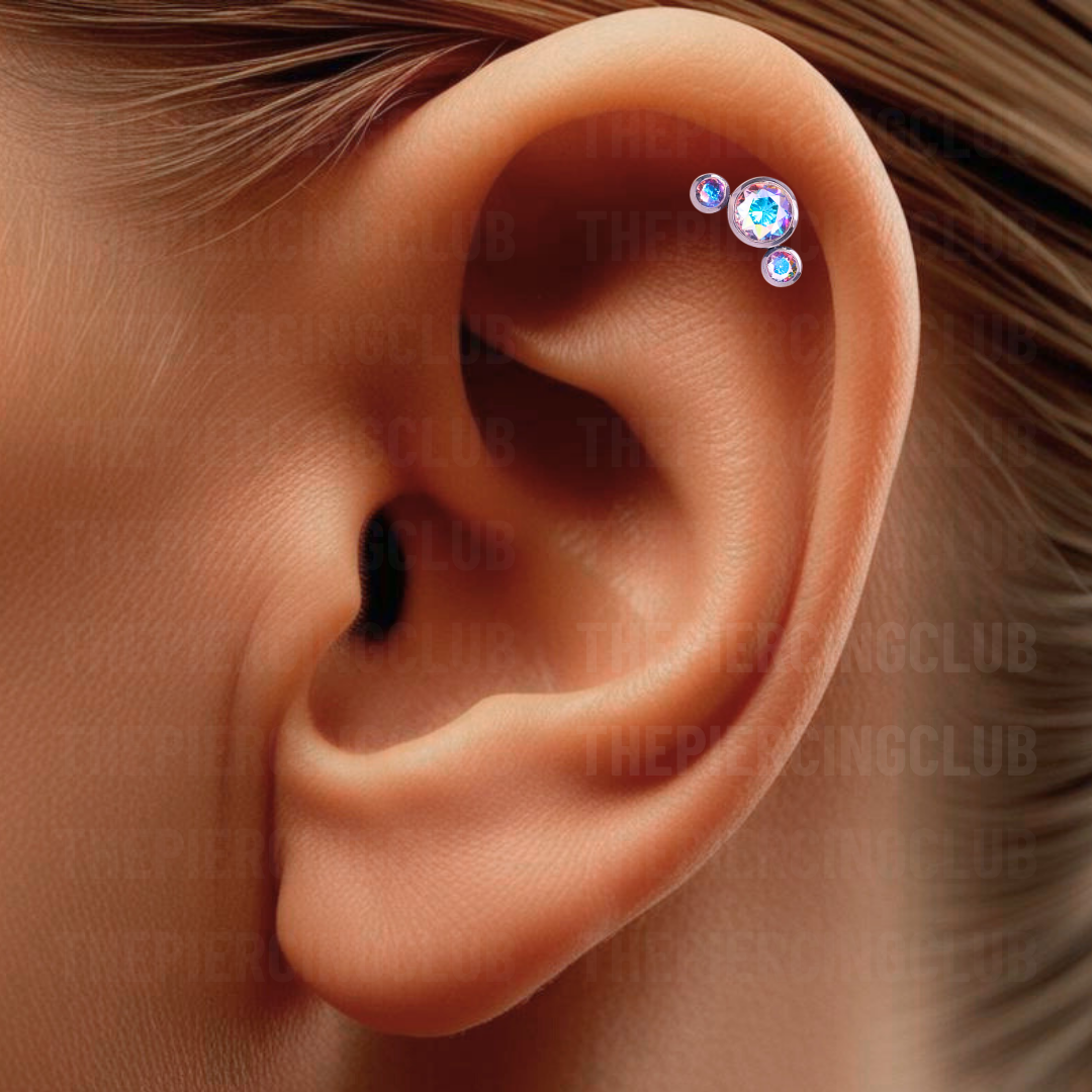 Joya neptuno cristal aurora boreal bezel / Helix piercing, titanio grado implante
