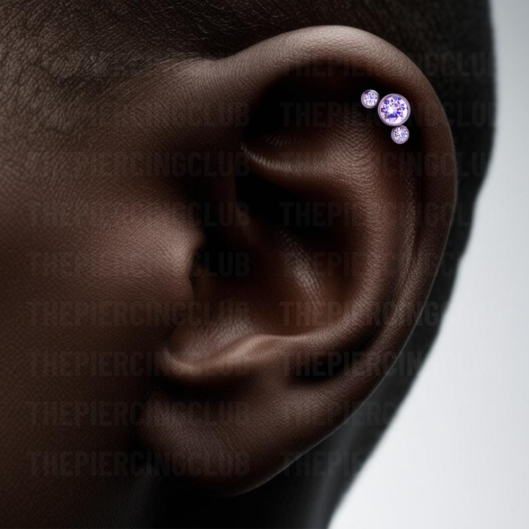 Joya neptuno cristal morado bezel / Helix piercing, titanio grado implante