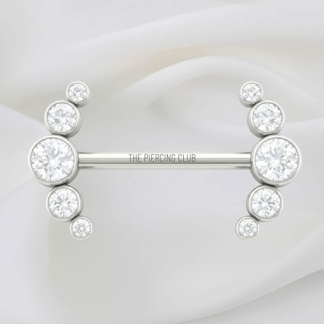 Joya recta con 10 cristales blancos deluxe / Nipple (Pezón) piercing , titanio grado implante