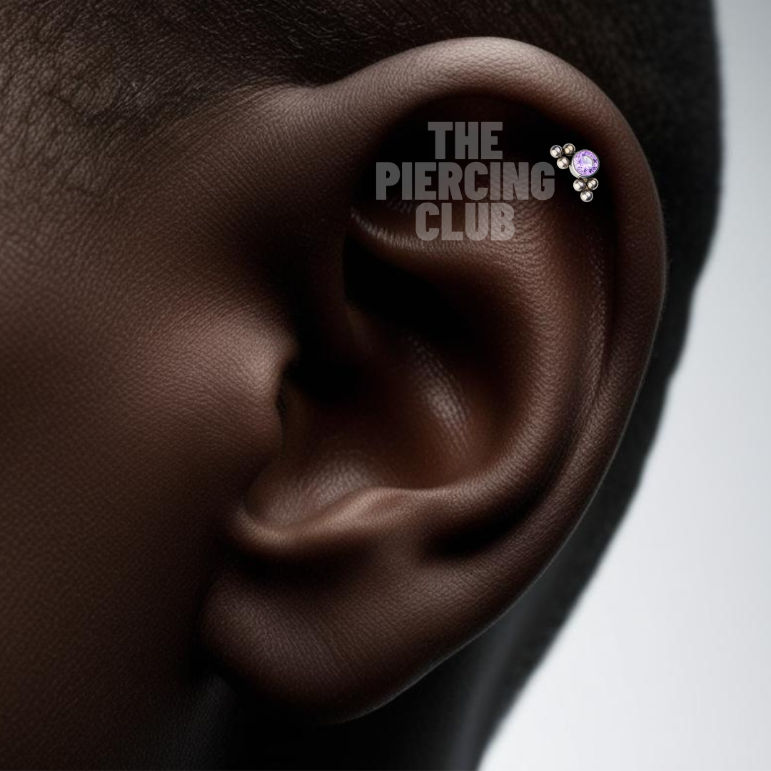 Joya sixball con cristal purpura deluxe / Helix piercing, titanio grado implante