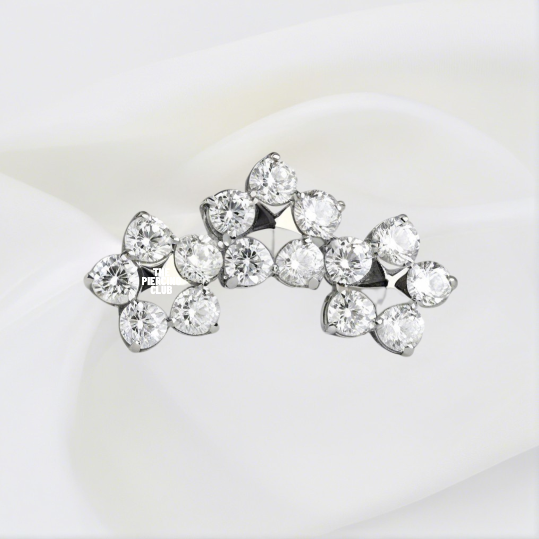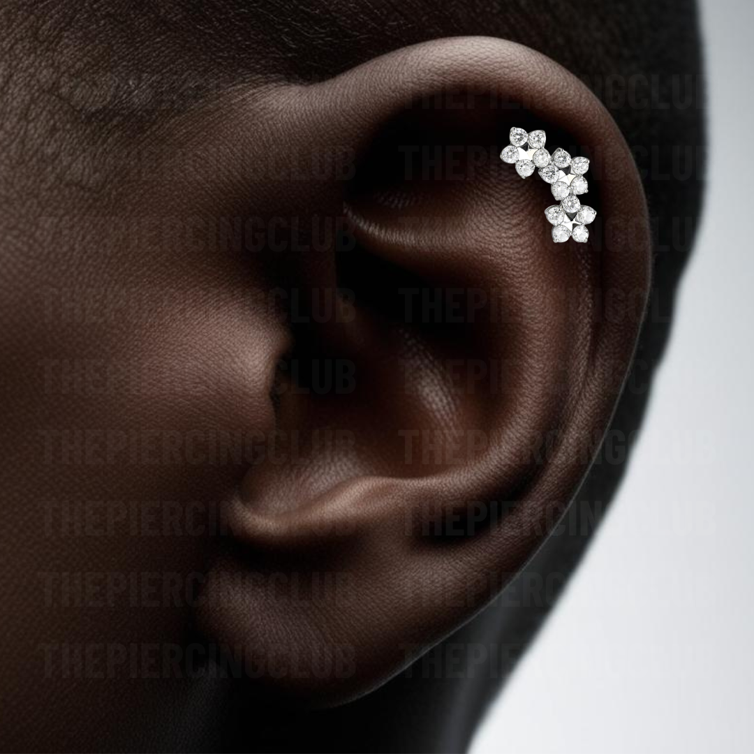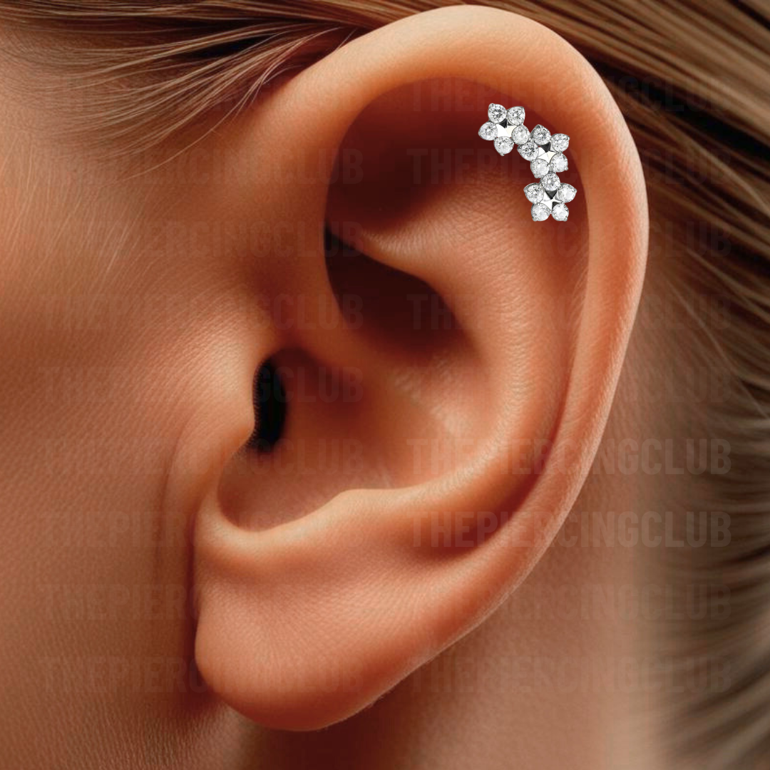 Joya triple flor de cristal blanco deluxe / Helix piercing, titanio grado implante