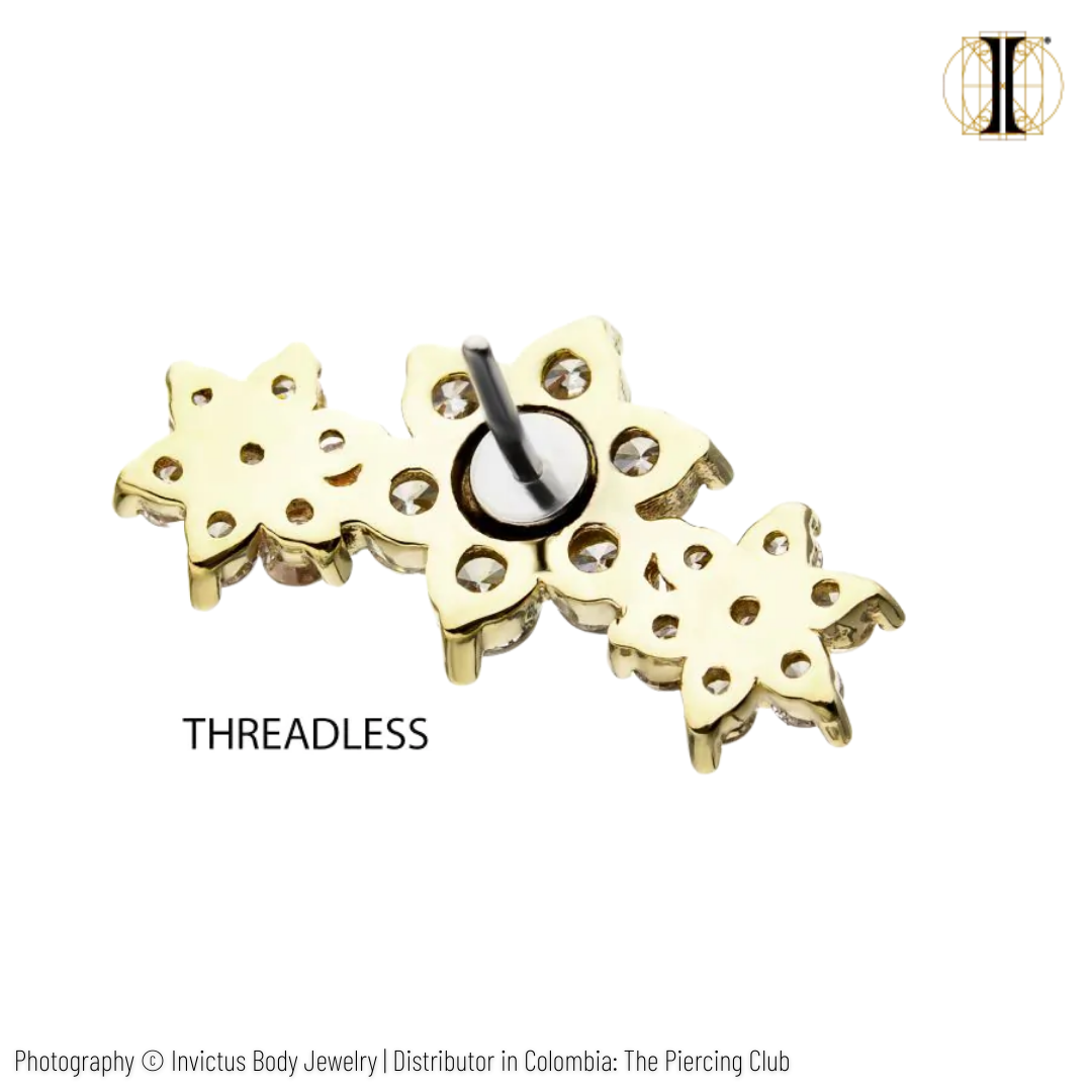 - Top en oro macizo 14k / Lo que va por dentro de la piel (Labret) en titanio grado implante.