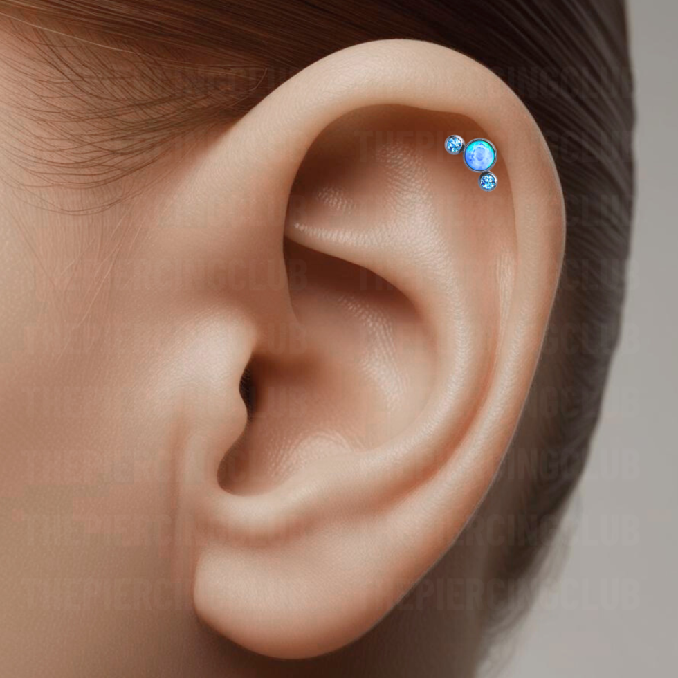 Joya neptuno ópalo y cristal aguamarina bezel / Helix piercing, titanio grado implante