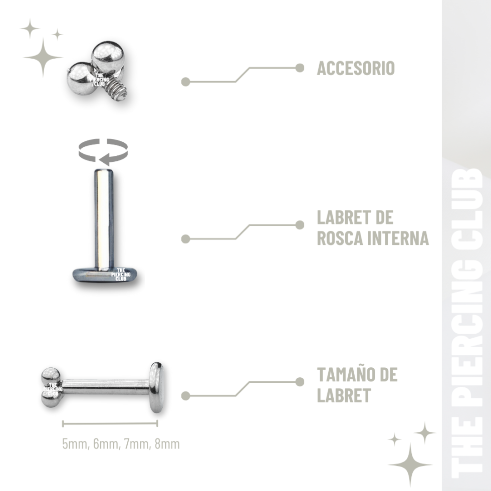 Tamaño de labret | 5mm (XS), 6mm (S), 7mm (M), 8mm (L) |