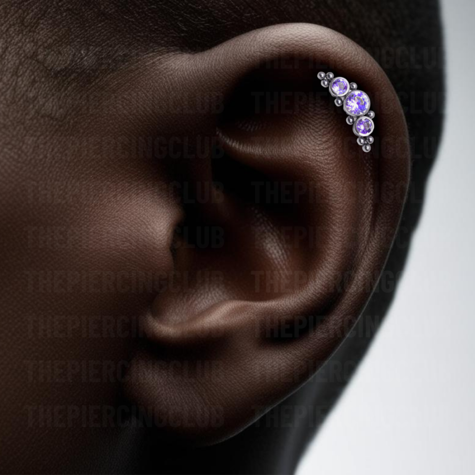 Joya solstice cristal morado bezel / Helix piercing, titanio grado implante