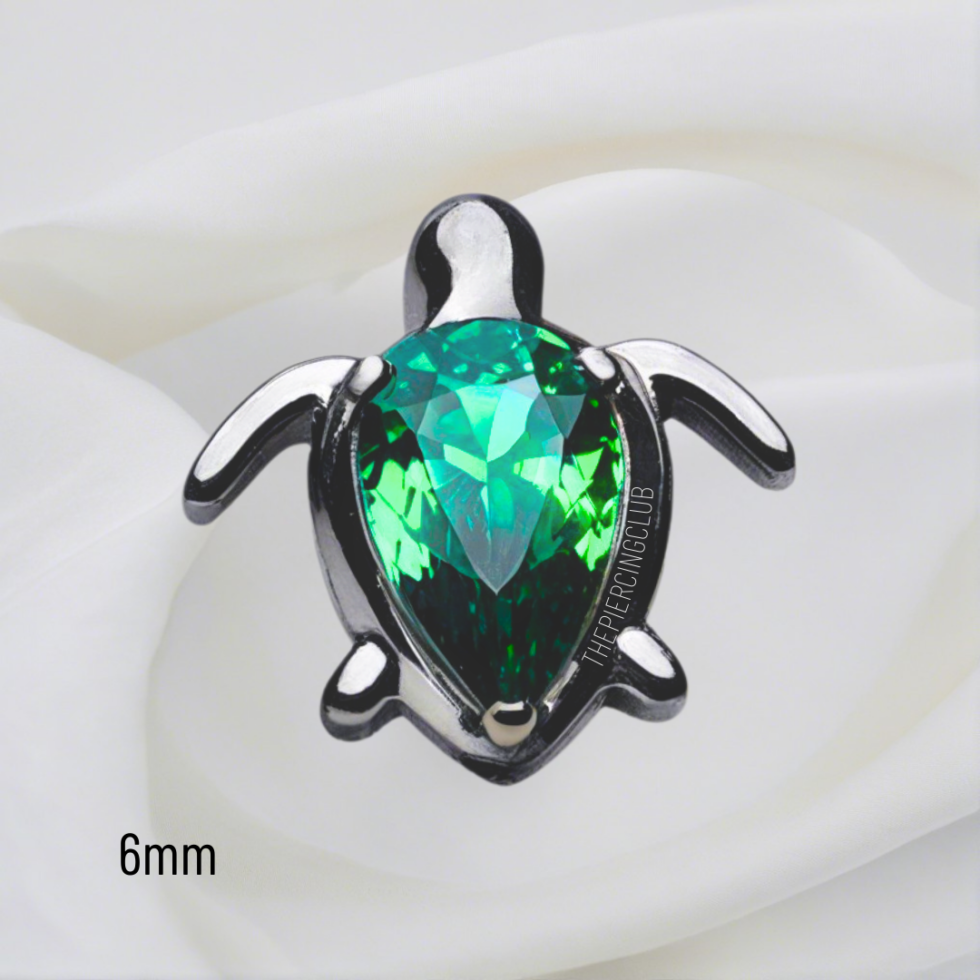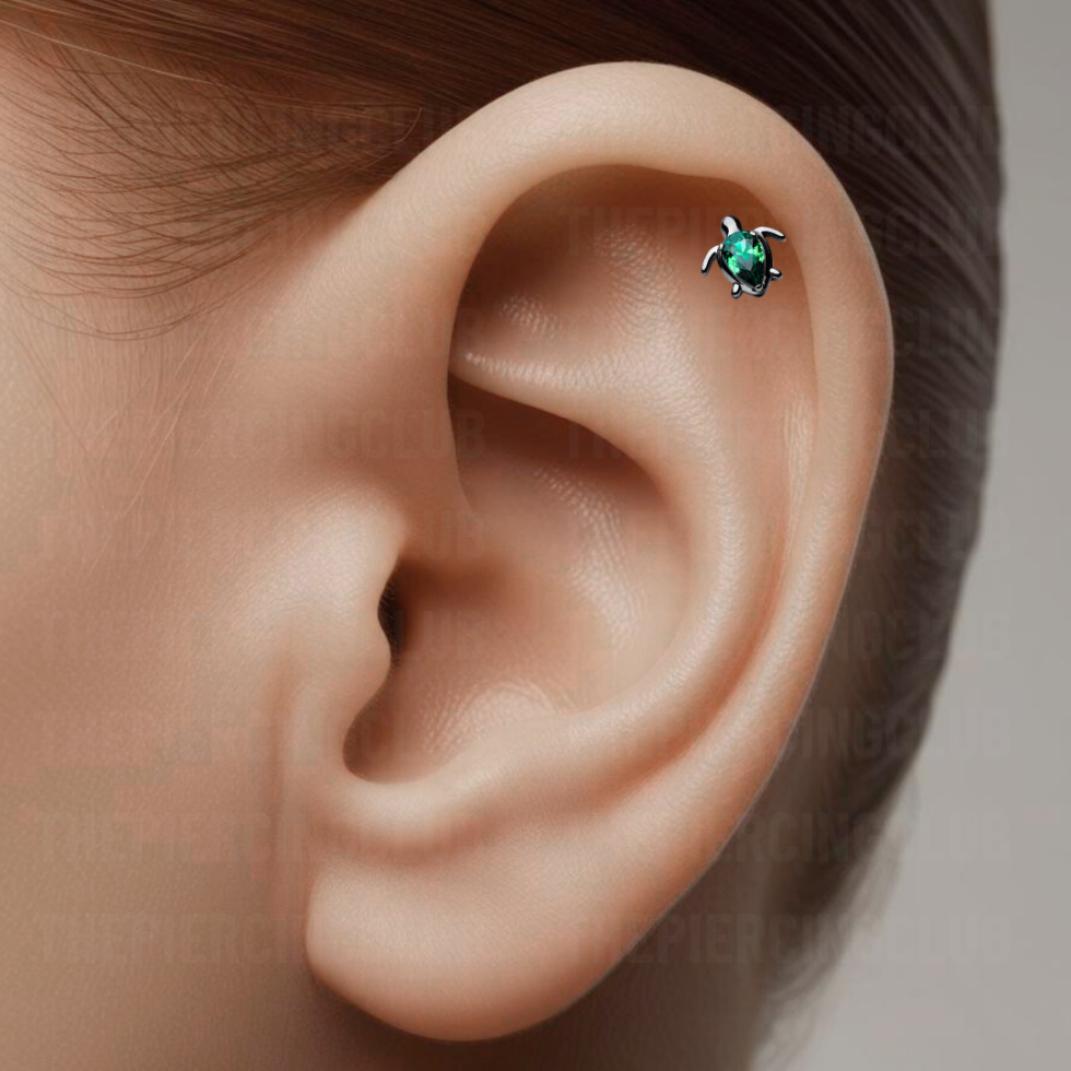 Joya tortuga con cristal verde esmeralda deluxe / Helix piercing, titanio grado implante