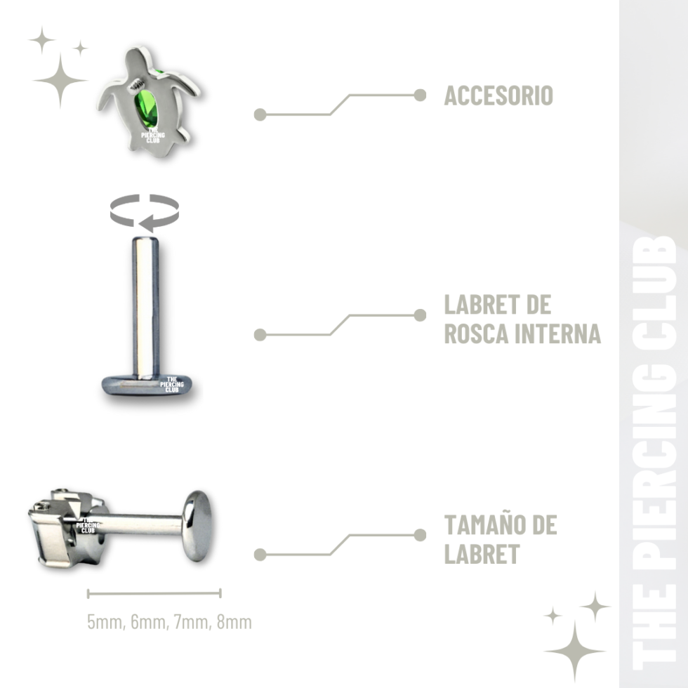 Tamaño de labret | 5mm (XS), 6mm (S), 7mm (M), 8mm (L) |