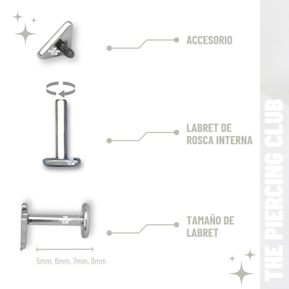 Tamaño de labret | 5mm (XS), 6mm (S), 7mm (M), 8mm (L) |